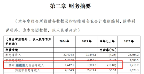 记者注意到,手续费及佣金收入是银行中间业务的重要组成部分,也是未来银行增长的重要驱动力。然而,渝农商行在这数据表现上却面临着较大困境。2024年,该行手续费及佣金净收入为16.12亿元,同比下滑10%,这一数据相较于前几年更为严峻。