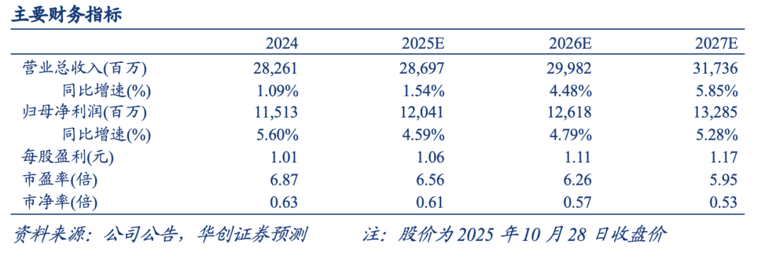 净利息收入支撑营收增长,拨备计提力度加大,归母净利润增速略有放缓。 1)核心营收能力持续向好。3Q25营收同比增长1.1%,增速环比上升1.5pct,主要由净利息收入驱动,在规模扩张和单季息差企稳回升背景下,单季净利息收入同比增长8.7%至61.1亿元。2)非息收入形成拖累。或受商户业务拓展策略影响,单季中收同比下降25.1%;而受市场利率波动以及去年同期高基数的影响,单季其他非息收入同比下降37.4%,对营收有所拖累;3)减值计提力度加大,利润增速有所放缓。前三季度归母净利润同比增3.74%,较上半年增速有所下降。主要是由于上半年拨备计提力度较小,而三季度单季不良生成率有所抬升,因此公司在三季度加大了拨备计提力度,拨备覆盖率环比上升9pct至365%。