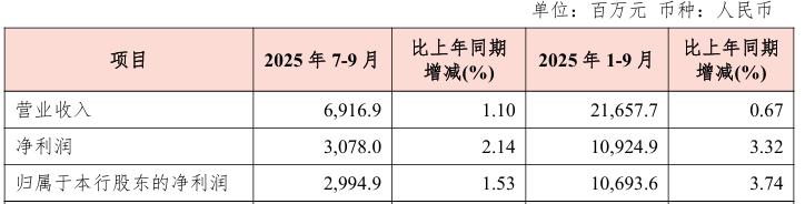 日前,渝农商行发布2025年三季报显示。前三季度,该行实现营业收入216.58亿元,同比上升0.67%;归母净利润为106.94亿元,同比上升3.74%。