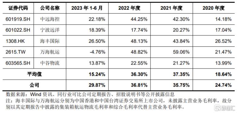 报告期内,锦江航运的主营业务的毛利率分别为24.74%、35.75%、36.81%和29.87%,处于同行业可比公司的合理区间范围内。