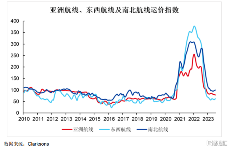 2010年至今各航线运价指数变动情况,图片来源:招股书