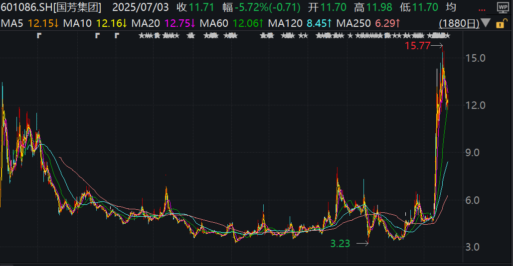 券商、私募、QFII在一季度的“联手”加仓或刺激了二级市场,国芳集团的股价在2025年第二季度大幅上涨,涨幅近163%,股价最高一度在5月29日涨至15.77元,这一价格也创了该股上市以来的历史新高。