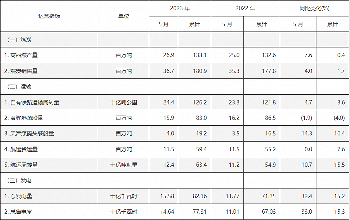 中国神华:前5月煤炭销售量合计1.81亿吨,同比上涨1.7%