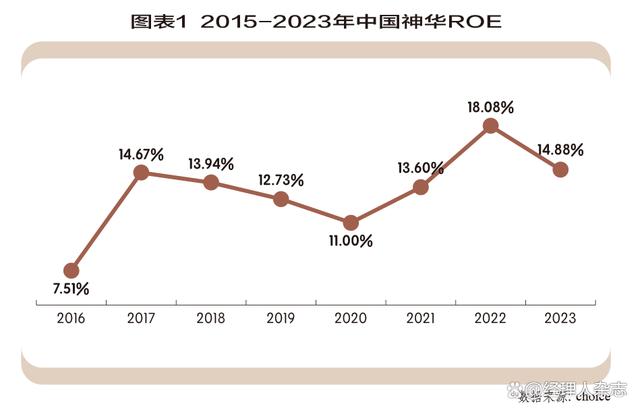 通过另一维度来分析,如图表1所示,2015年-2023年,中国神华的ROE(净资产收益率)均未超过20%,均值为12.43%,整体上呈现稳中有升趋势。从走势来看,2020年-2022年商品大周期繁荣刺激下,让公司的ROE出现了明显的提升,从2020年的11%提升至2022年的18.08%,一改2017年以后公司ROE持续下滑趋势。一般而言,不同行业其ROE也有着较大差异,而ROE>20%,投资者会认为这是一个优质的投资标的,很显然,中国神华的ROE表现并不足以让投资者十分满意。