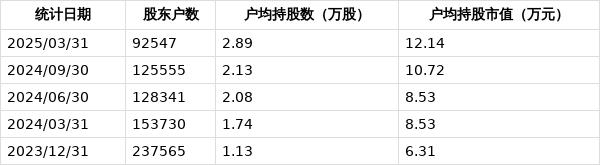 从4月11日公开信息显示,宏盛华源截至2025年3月31日公司股东户数为9.25万户,较上期(2024年9月30日)减少6936户,降幅为6.97%,持股趋于集中。