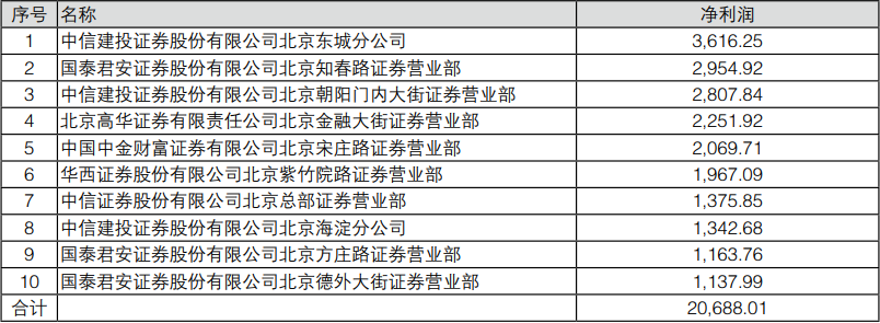 表3 2021年12月北京地区券商分支机构净利润前十(单位:万元)