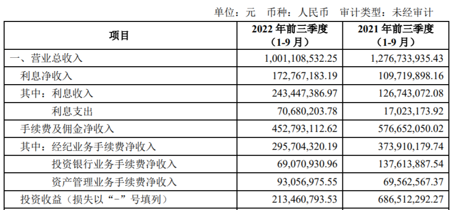 2022年前三季度,太平洋投资收益为2.13亿元,上年同期为6.87亿元,同比减少69.00%;公司信用减值损失为3.14亿元,上年同期为-1378.94万元。