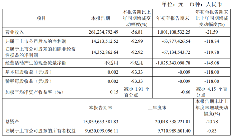 其中第三季度,太平洋实现营业收入2.61亿元,同比下降56.81%;归属于上市公司股东的净利润1421.35万元,同比下降92.99%;归属于上市公司股东的扣非净利润1435.29万元,同比下降92.92%;基本每股收益0.002元,同比下降93.33%;加权平均净资产收益率0.15%,同比减少1.91个百分点。