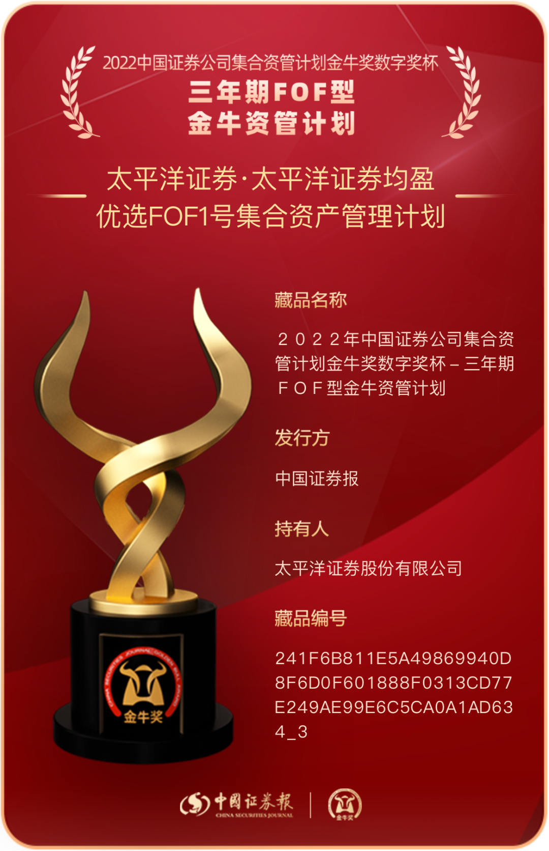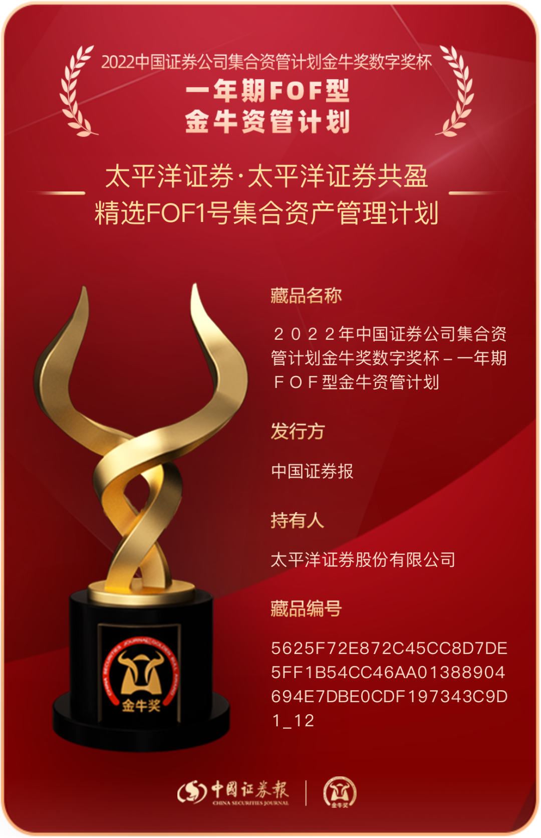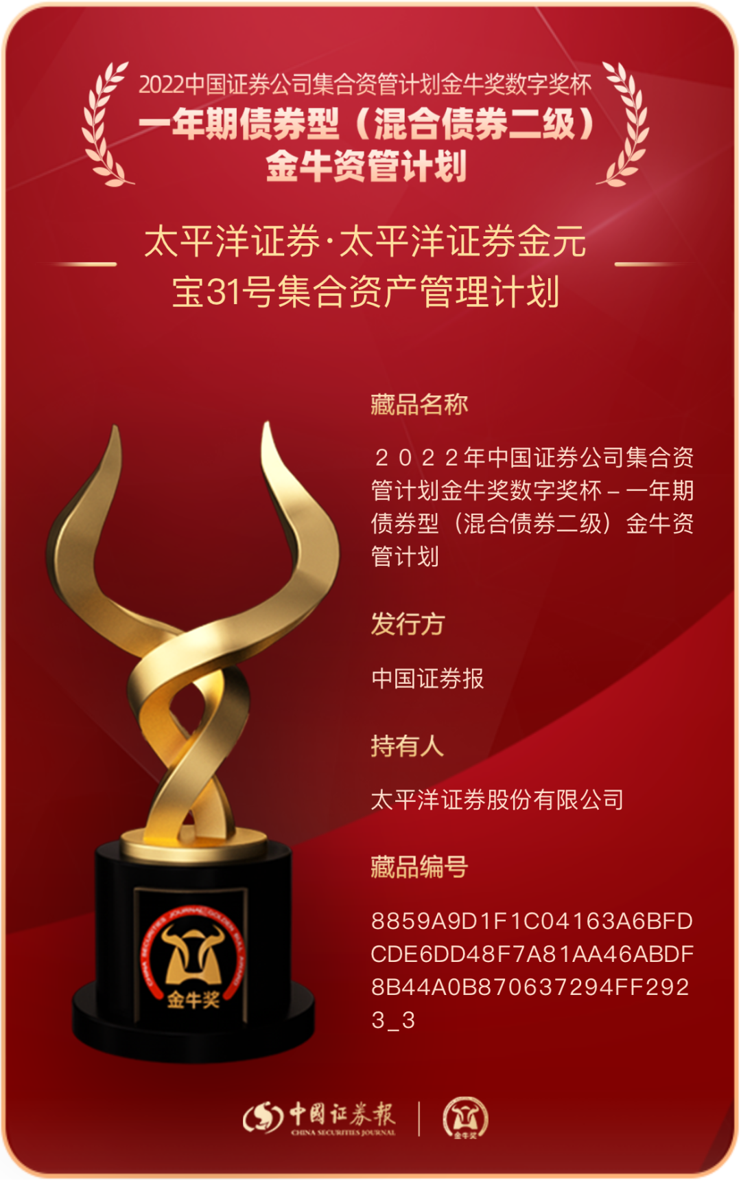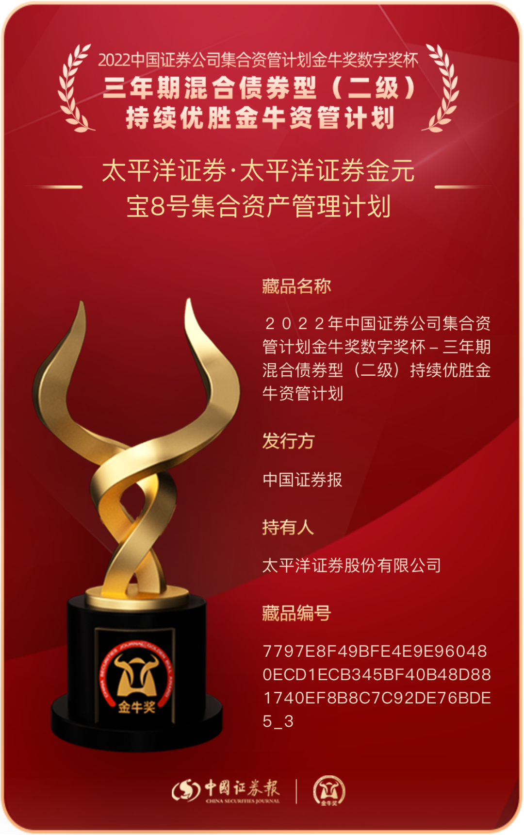 “金牛奖”是《中国证券报》倾力打造的品牌,目前已覆盖证券公司、银行理财、公募基金、私募基金、海外基金、股权投资、保险投资、上市公司等领域,是中国资本市场最具公信力的权威奖项之一,堪称行业内的“奥斯卡”。“2022中国证券公司集合资管计划金牛奖”主要宗旨是展示中国优秀券商资产管理公司和资管产品,提高和扩大券商资管业务在社会上的认同感,引导券商资产管理人更加注重产品的持续回报能力,培育和引导投资人的长期投资理念,推动我国证券公司资产管理行业朝着规范健康方向发展。