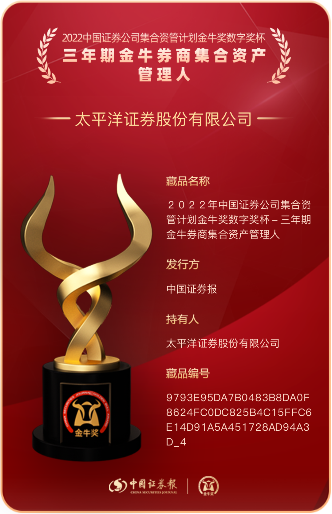 近日,由中国证券报主办的“2022中国证券业高质量发展论坛暨2022中国证券业金牛奖颁奖典礼”成功落下帷幕。“2022中国证券公司集合资管计划金牛奖”评选结果正式出炉,太平洋证券荣获八项大奖。