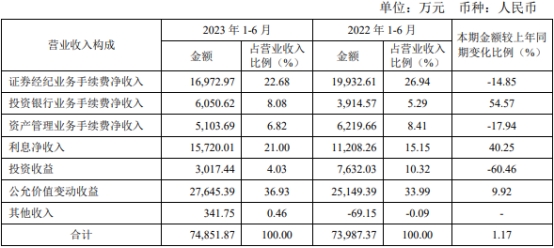 在投资银行业务方面,报告期内,公司完成百甲科技北交所上市项目发行,完成万达信息、津荣天宇再融资项目发行;英派斯、锌业股份2家向特定对象发行项目均已获得中国证监会同意注册的批复待发行;并购重组及其他业务基本维持稳定;债券发行承销业务上半年累计主承销发行债券17只,累计承销规模56亿元,同比上升73%。