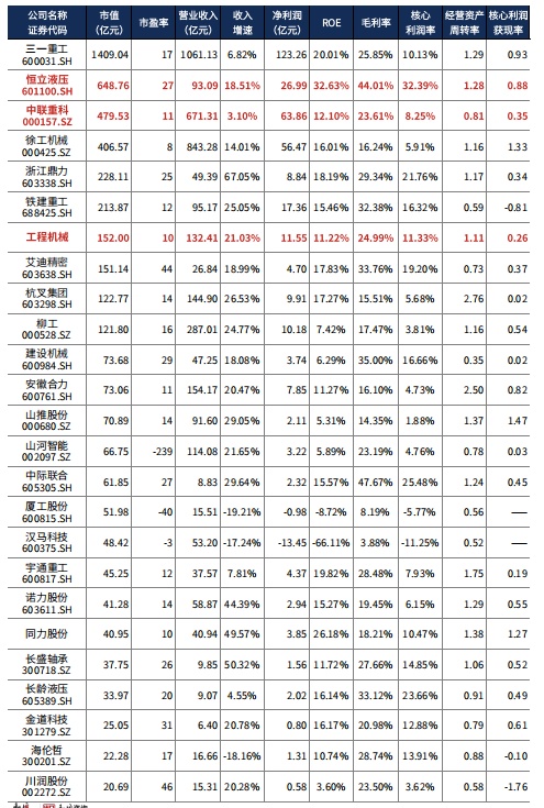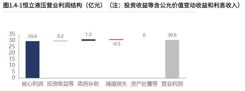 2021年报恒立液压核心利润增速10.35%,远高于中联重科(-29.90%)。
