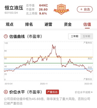 图:恒立液压估值曲线,来源:市值罗盘APP