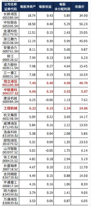图表:工程机械每股指标排名(已披露2021年报企业)