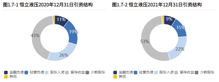2021年报恒立液压筹资活动现金流入7.27亿元,其中股权流入0.00元,债权流入3.89亿元,债权净流出2.86亿元,公司经营活动与投资活动产生现金流富余,公司开始进行历史债务的偿还。