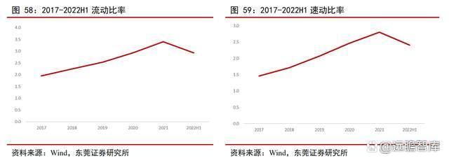 公司 2017-2021 年流动比率和速动比率均呈上升趋势。2021 年流动比率和速动比率分别为 3.40、2.80,分别同比提升 0.47pct、0.34pct,处于近五年来较高水平,公司的短期偿债能力处于良好水平。2022H1 流动比率和速动比率分别为 2.93、2.41,均同比有小幅度下滑。