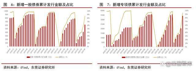 2022年 6 月发行新增一般债券 2041 亿元,同比增长 97.79%,环比增长 67.85%,占发行额度的 28.35%;发行新增专项债 13724 亿元,同比增长 218.91%,环比增长 117.15%,占发行额度的 37.60%。