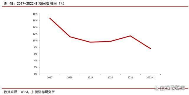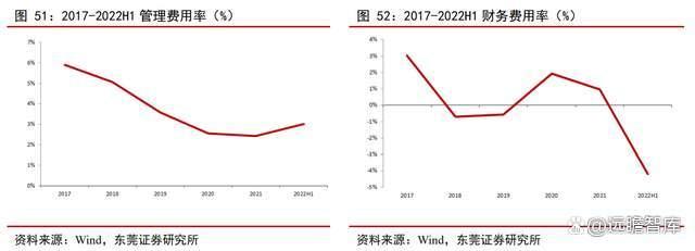 管理费用率(扣除研发费用)方面,2017-2021 年与销售费用率趋势相同,2021 年管理费用率为 2.44%,同比下降 0.11pct,主要为管公司强化日常经营管理导致销售、管理费用率下降。2022H1 管理费用率为 3.01%,同比提升 0.85pct。