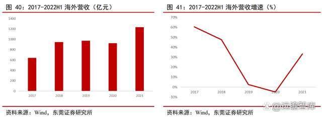 公司2021年海外营收 12.34 亿元,同比增长 33.39%,2017-2021年复合增长率为17.80%。海外营收总体呈上升趋势,在 2019 年触顶后小幅度回落,主要是受疫情影响,国外工厂停产。