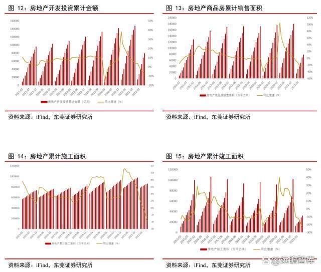 2022 年 7 月,固定资产投资累计同比下降 5.20%,同比下降 17.70pct,环比下降 1.00pct。7 月国内房地产开发投资 11147.79 亿元,同比下降 12.33%,环比下降 31.10%;1-7 月累计金额 79462.39 亿元,同比下降 6.40%,房地产开发累计投资金额已连续 17 个月同比下降。7 月单月房地产累计销售面积、施工面积、竣工面积分别同比下降 23.09%、3.66%、 23.35%。
