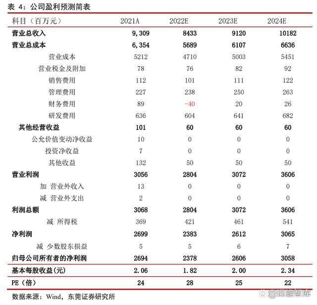 公司产品多元化布局,产品线不断完善,将不断提升公司核心竞争力。预计 2022-2024 年 EPS 分别为 1.82 元、2.00 元、2.34 元,对应 PE 分别为 28 倍、25 倍、22 倍。