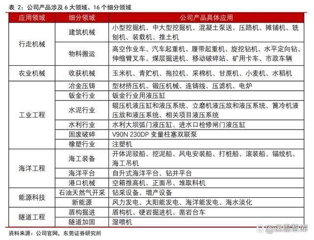 6)盾构机、湿喷机等隧道工程领域。随着公司不断完善产品线,产品应用领域将持续扩大。