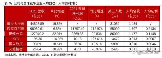 公司 2021 年人均创收、人均创利分别为 160 万元、46 万元,均好于日本 KYB 及艾迪精密。