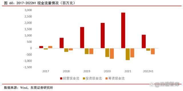 公司 2017-2021 年经营性现金流呈上升趋势,2021 年实现经营性现金流 27.95 亿元,同比增长 41.15%,主要是公司销售大幅增长,销售货款回款及时。2022H1 经营性现金流为 10.42 亿元,同比下降 12.01%,主要系销售规模同比下降导致。