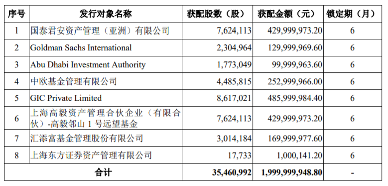 图:恒立液压非公开发行获配情况