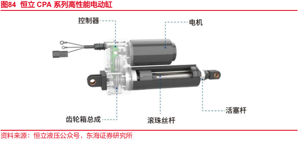 高性能电动缸已经实现生产交货。在电动缸技术与相关产品研发创新方面,公司推出CPA系列集成一体化电动推杆,其设计可负载极端严苛环境,具有过流、过压、温度等过载保护。CPA系列可广泛应用于农业机械、高空作业车平台、轨道交通、智能物流、能源发电等多个行业领域,替换原有由手动、气动及液压系统的执行机构,以其高效、精准、快速等特点大幅提高生产效率,满足客户各种控制需求。