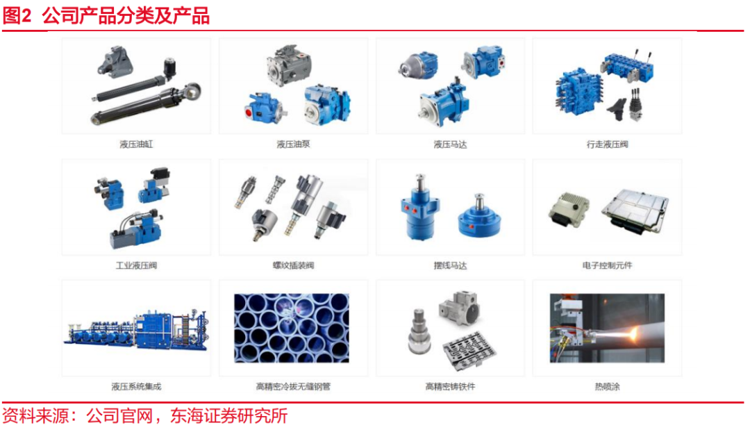 产品覆盖6大应用领域,细分行业空间广阔。如果说发动机是机械设备的“心脏”,为机械设备提供源源不断的动力。液压件则是机械设备的“肌肉”,控制执行机械设备的各种动作,也是装备制造业的核心零部件,公司产品应用于行走机械、农业机械、工业工程、海洋工程、能源科技、隧道工程等6大制造工程领域,其中涉及建筑、物流、农业、冶金、钣金、橡胶、水泥、固废、海工、港口、新能源等广泛细分行业。