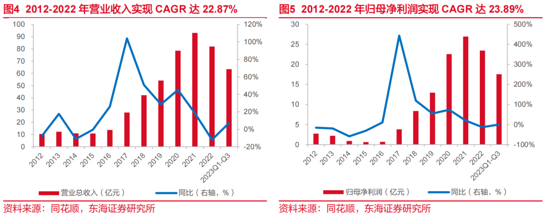 2012-2022年公司归母净利润实现复合增长率达23.89%。受下游工程机械行业需求波动影响,公司2022年实现营收81.97亿元,同比下滑11.95%;实现归母净利润23.43亿元,同比下滑13.03%。2023年前三季度,公司实现营收63.44亿元,同比增长7.18%;实现归母净利润17.54亿元,同比增长0.25%。在工程机械行业需求整体承压的背景下,实现增长凸显业绩韧性和实力。