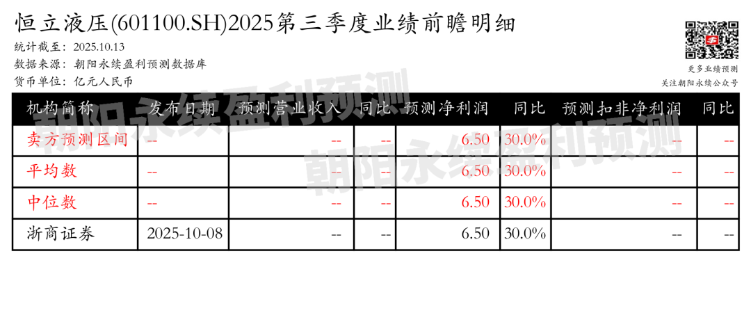 截至2025年10月13日,根据朝阳永续季度业绩前瞻数据: