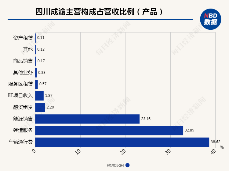 在高速公路运营管理业务中,通行费收入是重要来源之一,2022年上半年,通行费收入占其整体营收的比例超38%。不过,2022年上半年,除成乐高速以外,四川成渝运营的各路段的通行费收入都有不同程度的降低。