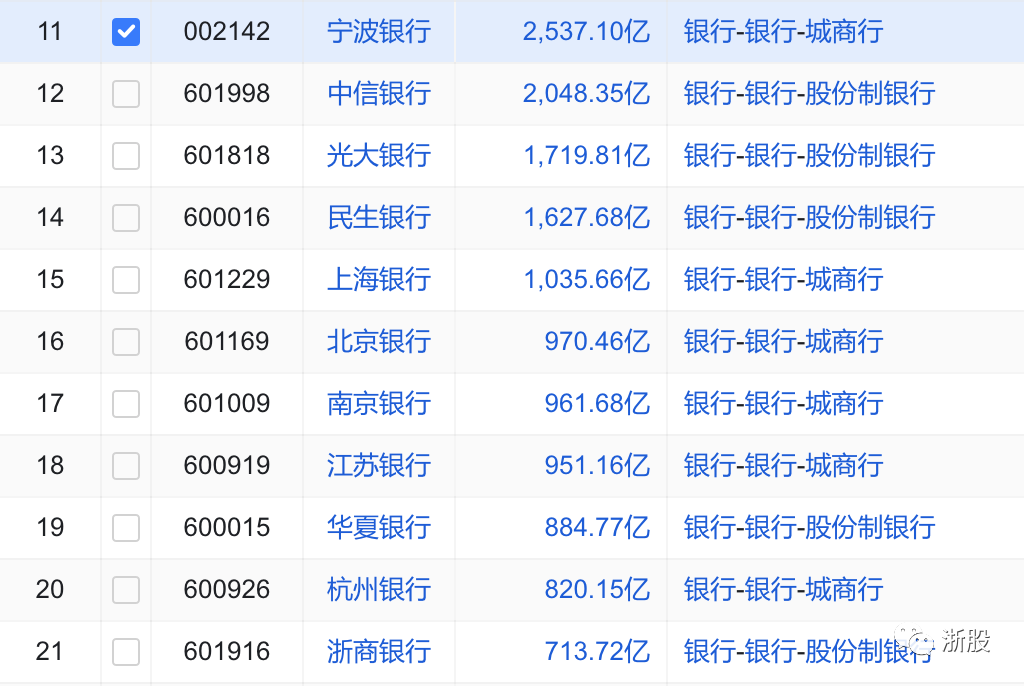目前,在A股银行市值排名中,宁波银行、杭州银行、浙商银行分列第11、20、21位。