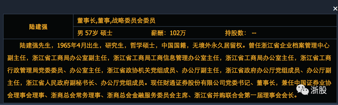 几个月后的2018年8月,陆建强出任财通证券董事长,后又出任浙商总会金融服务委员会主席、浙江省并购联合会第一届理事会会长。