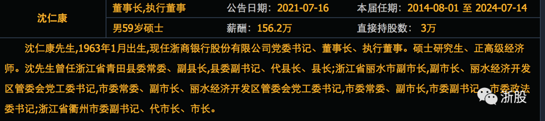 今日传出消息,根据浙江省委省政府通知精神,由陆建强同志担任浙商银行党委委员、书记,提名任董事、董事长;提议沈仁康不再担任董事、董事长,免去党委委员、书记职务。