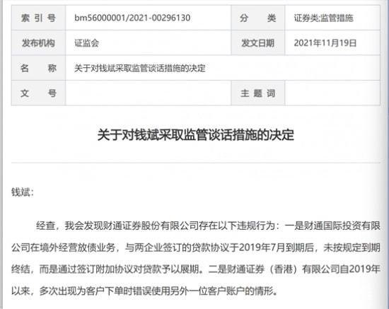 综上,证监会责令财通证券改正。同时在财通证券的部分违规行为中,钱斌作为公司境外子公司分管负责人,对相关违规行为负有领导责任。