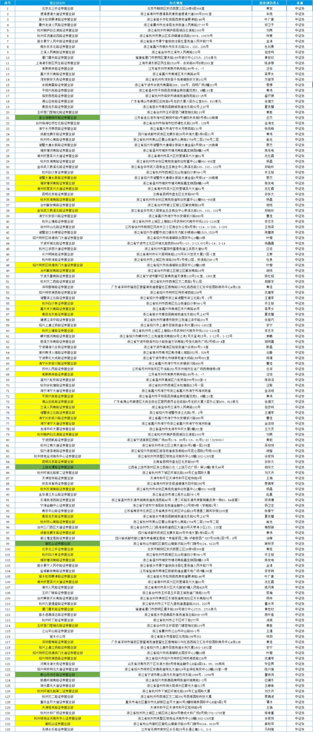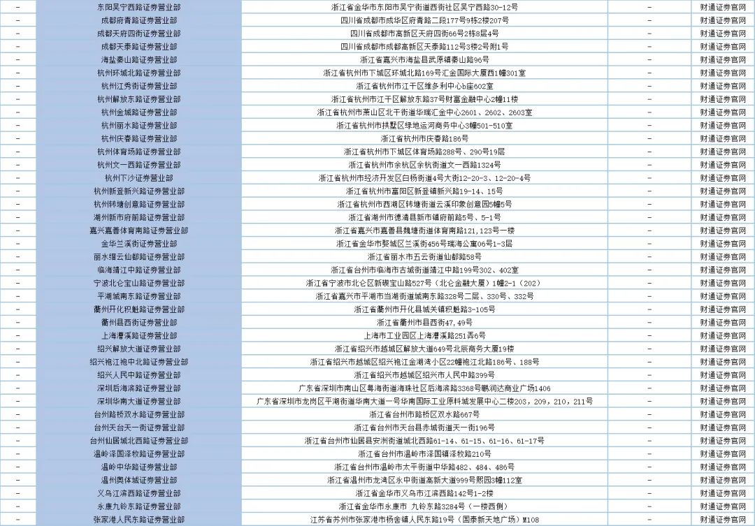 据中证协统计,财通证券共有27家分公司,133家营业部。行家发现中证协列表中有大量的重复项,去重后列示91家营业部。而财通证券官网显示有127家营业部,其中40家(蓝色标注)未出现在中证协列表中。另有4家出现在中证协列表中的营业部(绿色标注),没有出现在财通证券官网。