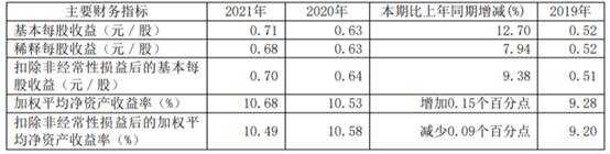2021年,财通证券的基本每股收益为0.71元,比上年同期增长12.70%;加权平均净资产收益率为10.68%,比上年同期增加0.15个百分点。