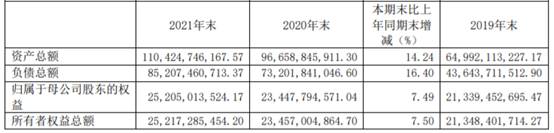 截至2021年末,财通证券资产总额1104.25亿元,同比增长14.24%;负债总额852.07亿元,同比增长16.40%;资产负债率为72.25%,较上年末增加2.01个百分点。