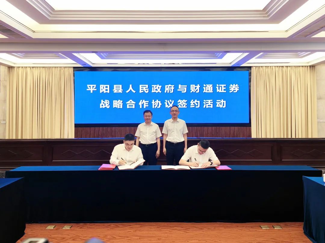 7月5日,财通证券与平阳县人民政府签订战略合作协议。根据协议,财通证券将充分发挥国有金融机构战略性平台作用,通过产投联动、投融资、资源共享等专业领域合作,为平阳推进“工业强县”“服务业兴县”建设提供金融支持,全力支持平阳打造山区县共富标杆。