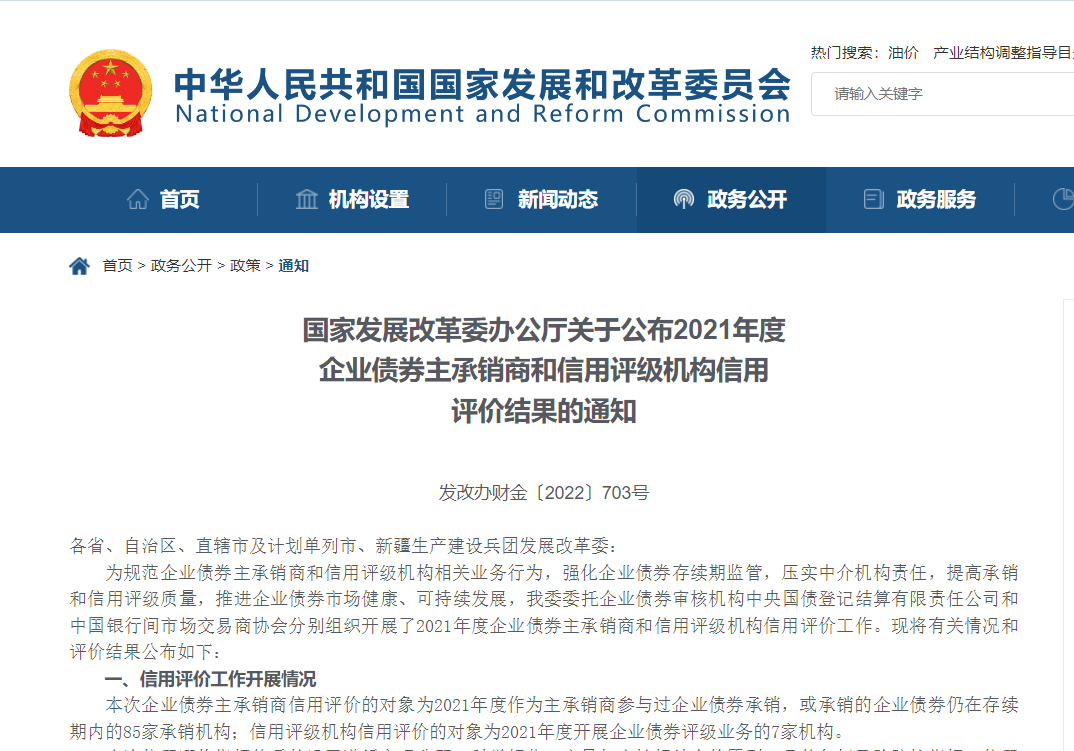 2022年8月15日,国家发展改革委发布2021年度企业债券主承销商信用评级结果,财通证券以87.90分,在85家参评承销机构跻身第十,荣获企业债券主承销商信用评级A类!