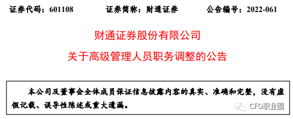 2022年9月5日,财通证券股份有限公司(以下简称:公司)召开第三届董事会第二十二次会议,审议通过了《关于高级管理人员职务调整的议案》,现就