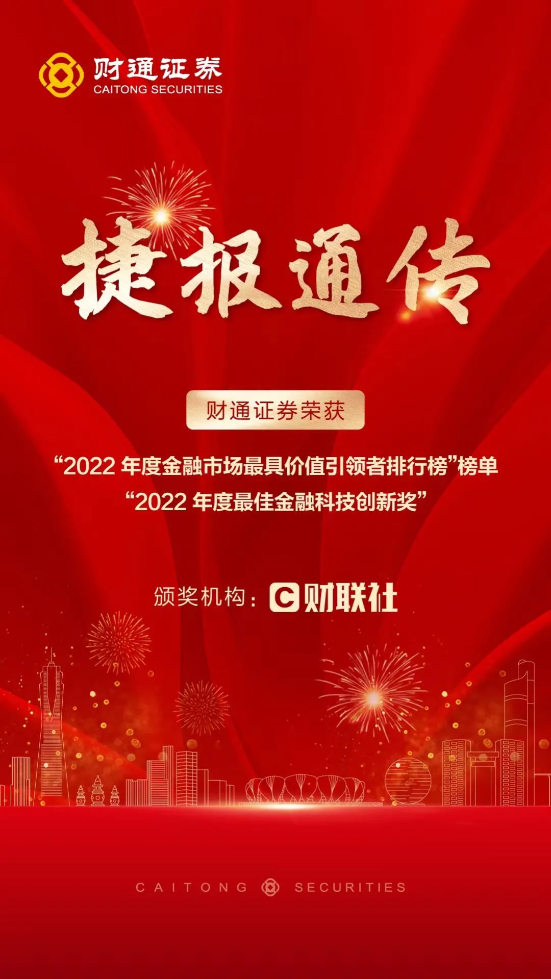 12月28日,由上海报业集团指导,财联社主办的2022财联社第五届投资峰会在上海圆满举办,会上,“2022年度金融市场最具价值引领者排行榜”榜单揭晓,财通证券荣获“2022年度最佳金融科技创新奖”,这是业界对财通证券的科技能力、运营能力及数字化能力的认可和肯定。