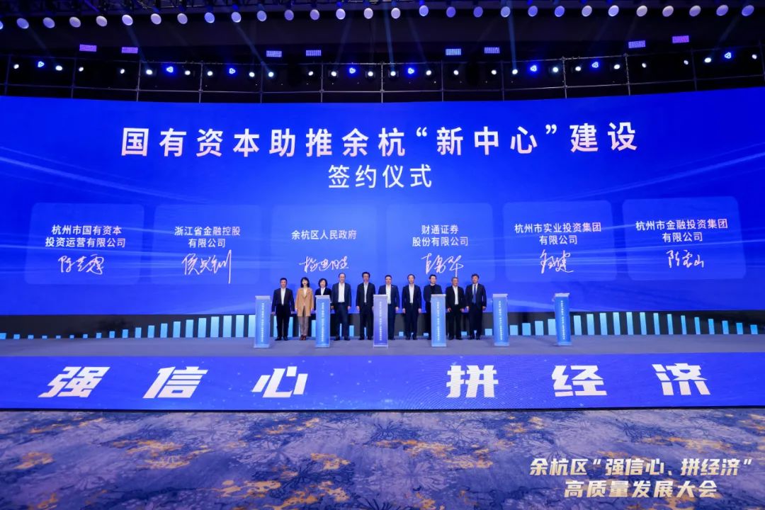 2月8日下午,余杭区举办“强信心、拼经济”高质量发展大会。会上,财通证券与余杭区人民政府签署战略合作协议,双方将围绕投行、投资、财富三大领域,在国有平台股权融资、债权融资、资产管理、并购重组、产业基金管理等方面开展全面合作,助力余杭区高质量发展。财通证券总经理、党委副书记黄伟建,董事会秘书官勇华,杭州市委常委、余杭区委书记刘颖,区委副书记、区长王牮等区四套班子领导出席签约仪式。