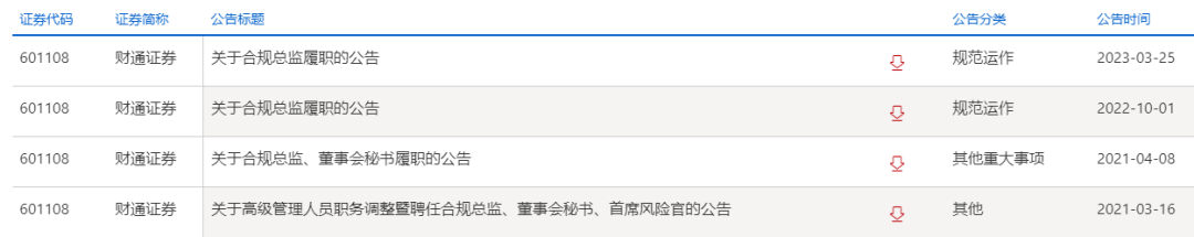 券业人事变动颇为留意的行家,瞥到财通证券似曾相识的任职公告,来自合规总监一职。而这一高管职位的人选,最近两年来已经是第四任。