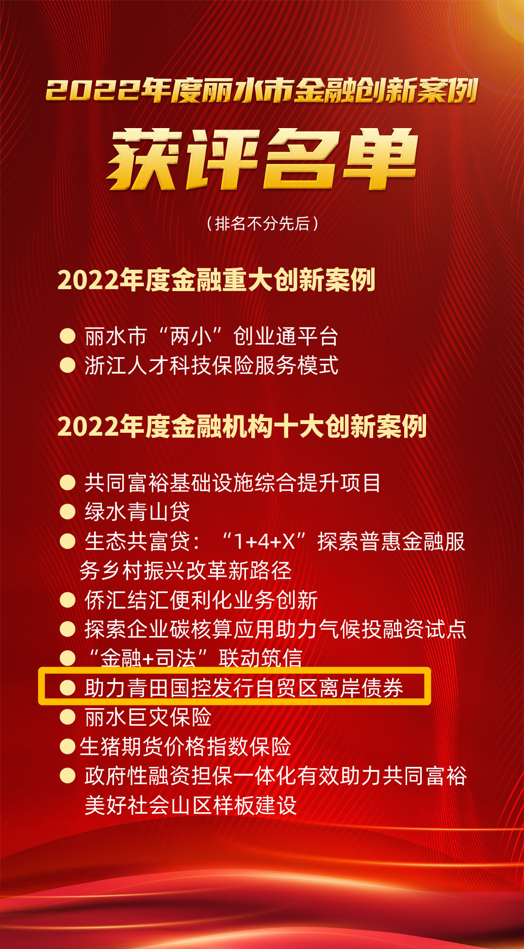 2022年度丽水市金融创新案例