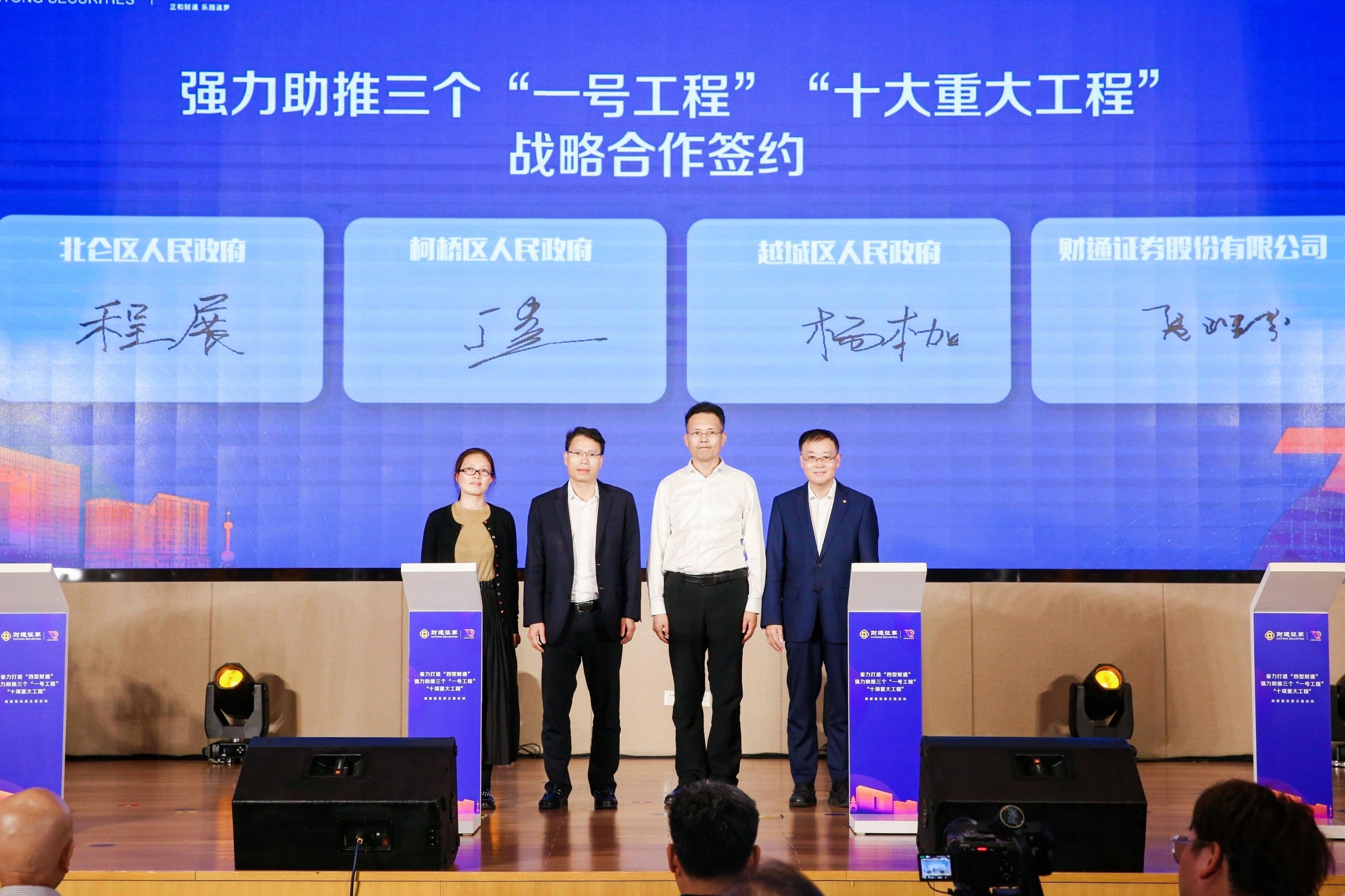 为进一步整合各方资源,做强做大生态圈、朋友圈,活动现场,财通证券与宁波市北仑区人民政府、绍兴市越城区人民政府、绍兴市柯桥区人民政府达成战略合作;“牵手”浙江省自然资源集团有限公司、上海市浙江商会、江苏省浙江商会、四川省浙江商会、中邮理财有限责任公司、中信银行股份有限公司杭州分行、渤海银行股份有限公司杭州分行、海亮集团有限公司等合作伙伴;与绍兴柯桥水务集团有限公司、江山市城市建设投资集团有限公司分别签署公募REITS项目合作协议;与浙江明佳环保科技股份有限公司、杭州天易成新能源科技股份有限公司分别签署IPO项目合作协议,为浙商浙企和区域经济高质量注入金融动能。