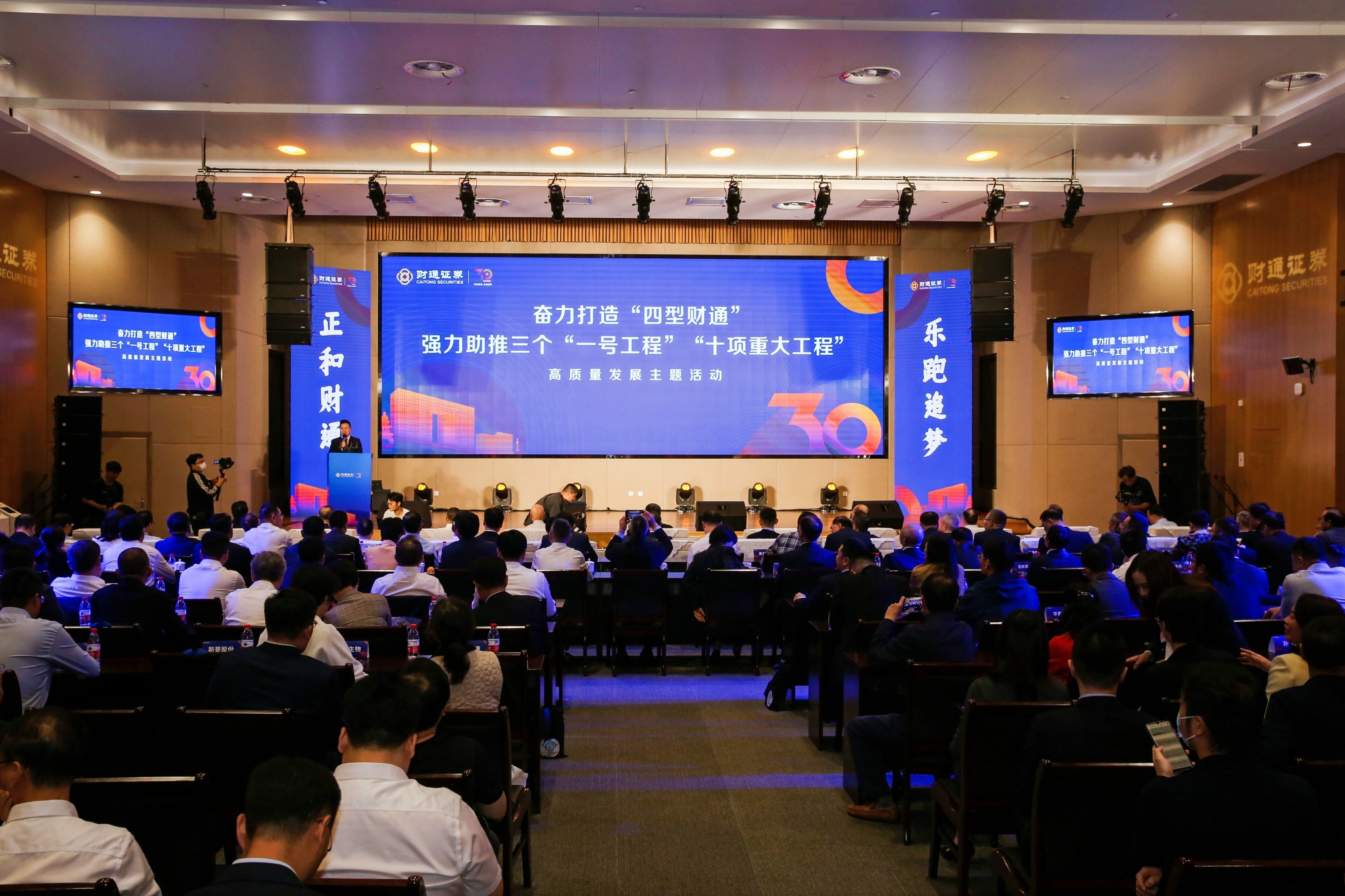 高质量发展是全面建设社会主义现代化国家的首要任务,而金融高质量发展是经济高质量发展的重要机制和推进器。三十而立的财通证券,以实干和担当,为服务经济社会高质量发展贡献了积极力量,得到各级领导和社会各界的肯定。今年6月,浙江省委书记易炼红在专题调研金融服务创新推动三个“一号工程”时对财通证券的工作给予肯定并提出殷切期望:要以成立30周年为契机,更好服务发展大局,真情实意、竭尽全力为浙商浙企提供更多增值服务、赋能服务,做“浙商浙企自己家的券商”,与浙商浙企构建发展共同体、利益共同体、命运共同体,建设“四型财通”、打造一流投行。
